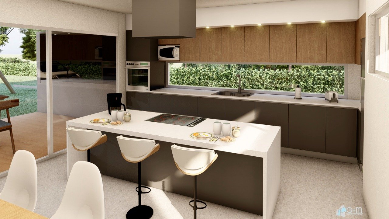 En planta baja se ubicaron las áreas sociales: living-comedor, cocina, habitación de húespedes, baño, lavadero y galería. Se diseñaron espacios amplios, integrados, priorizando la buena vinculación con los espacios exteriores.