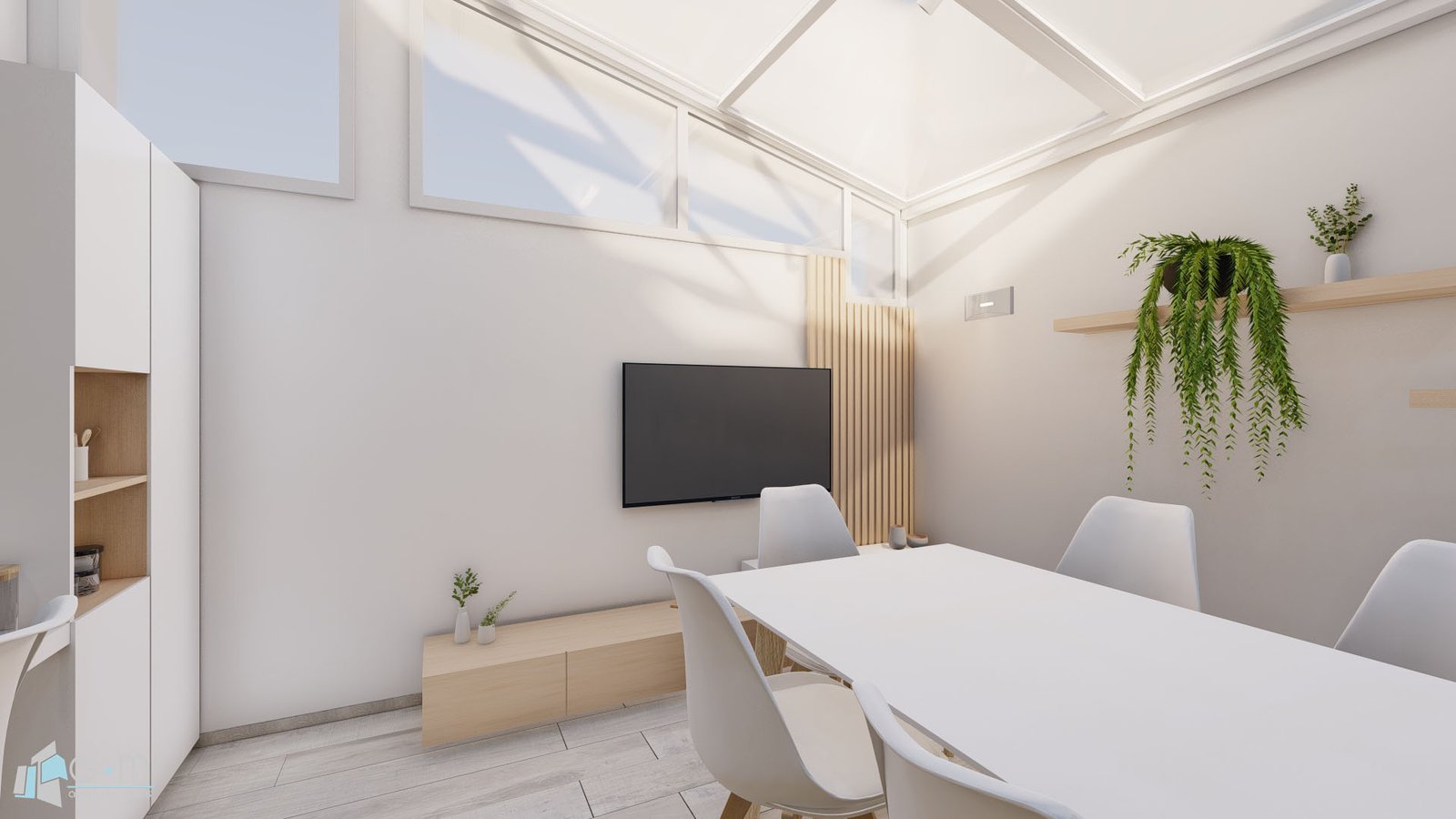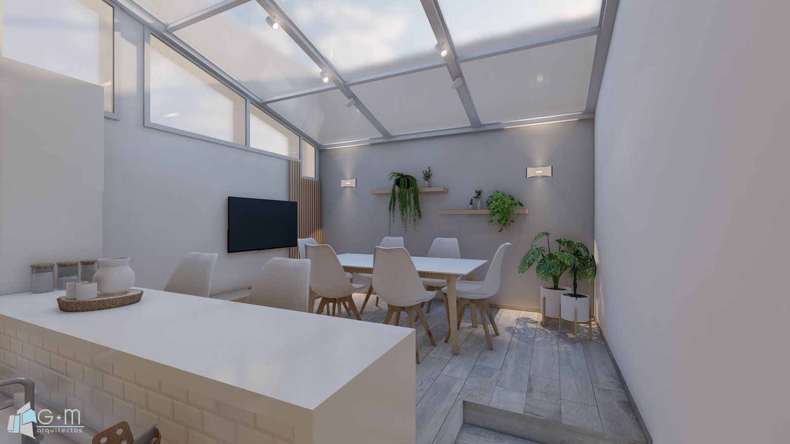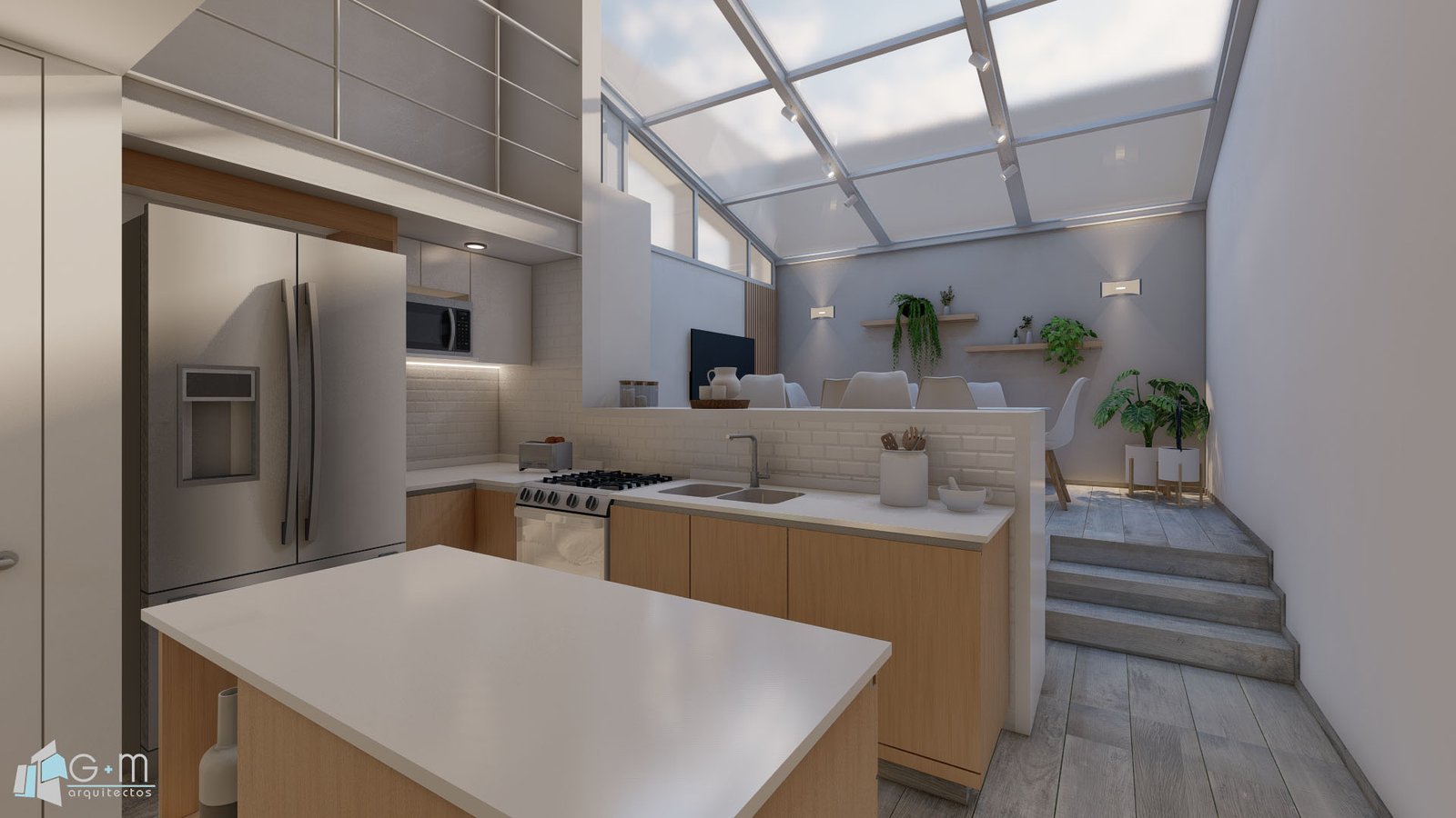 Se reformó un triplex en su totalidad. En la planta baja el pedido del cliente fue integrar un patio techado a la vivienda. Se decidió ubicar el comedor en este patio para poder tener un living de mayores dimensiones. Se cambiaron los pisos del comedor, se agregó iluminación y mobiliario a medida. A su vez se modernizó la cocina y se optimizó el espacio de mesada y guardado. Se utilizaron colores claros y madera para lograr calidez. También se modernizó el toilette.