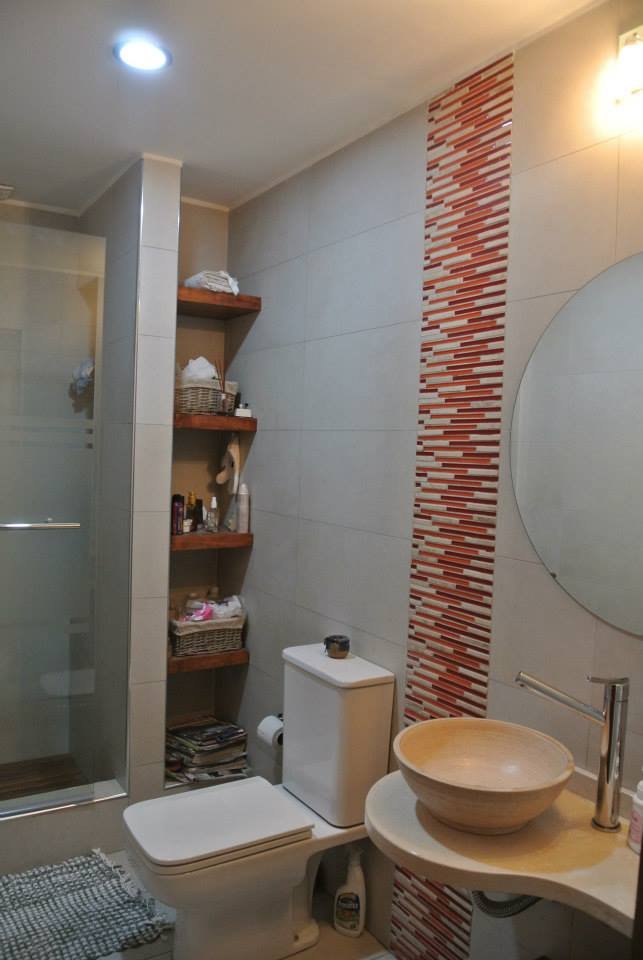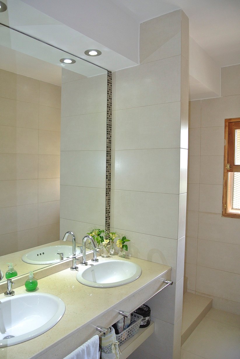 Frente a ello, se decidió demoler y avanzar sobre el palier y un sector del balcón sin uso. Se logró un cómodo baño compartimentado, con un antebaño para los hijos, y otro para el matrimonio. Asimismo se agrando el vestidor, por el cual se accede al baño desde el dormitorio principal.