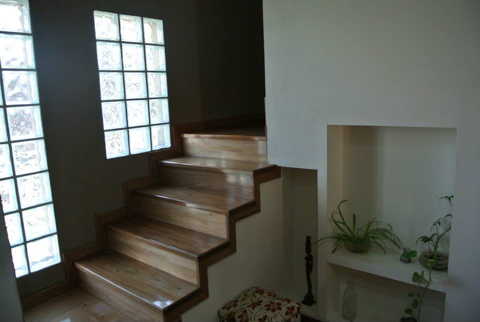 Se quitaron unas ventanas pequeñas en el frente y se coloco unos paños de ladrillo de vidrio, que aportan gran luminosidad sin resignar privacidad. Bajo la escalera se ubica un lugar de guardado, muy util para el uso diario.