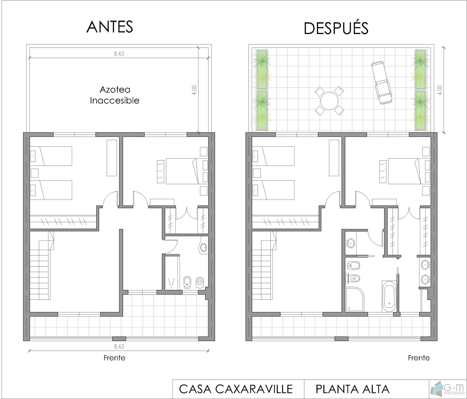 Respecto de la terraza se decidió hacerla accesible, para lo cual se colocó una puerta ventana en el dormitorio principal, se realizaron las paredes medianeras y se colocaron los pisos.