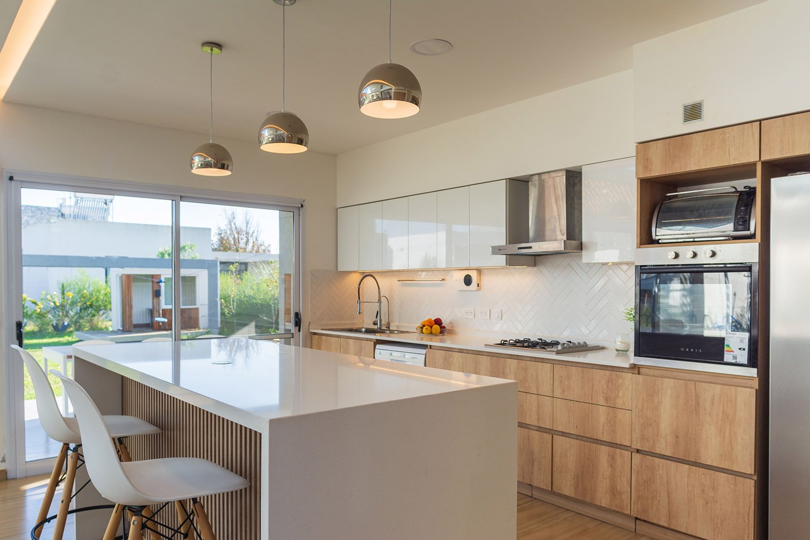 El diseño de la casa es moderno y minimalista. Se optó por utilizar colores claros, grandes ventanales y detalles en madera para generar calidez.