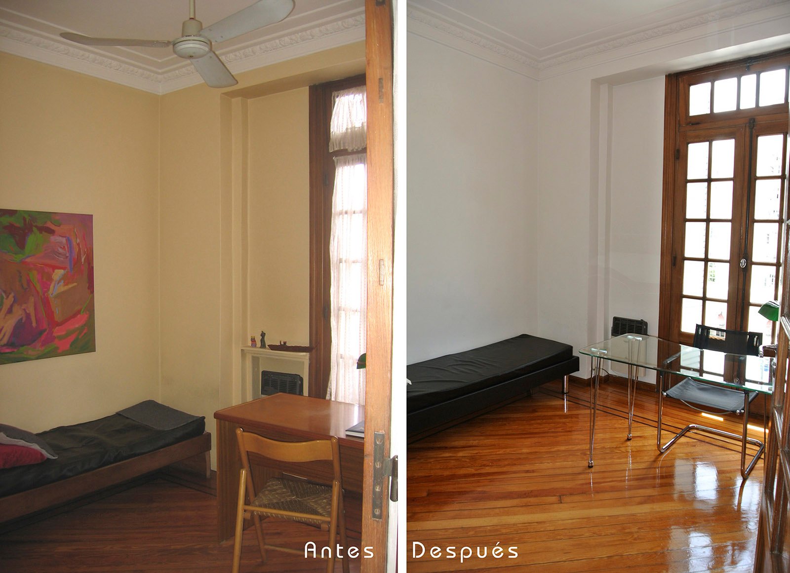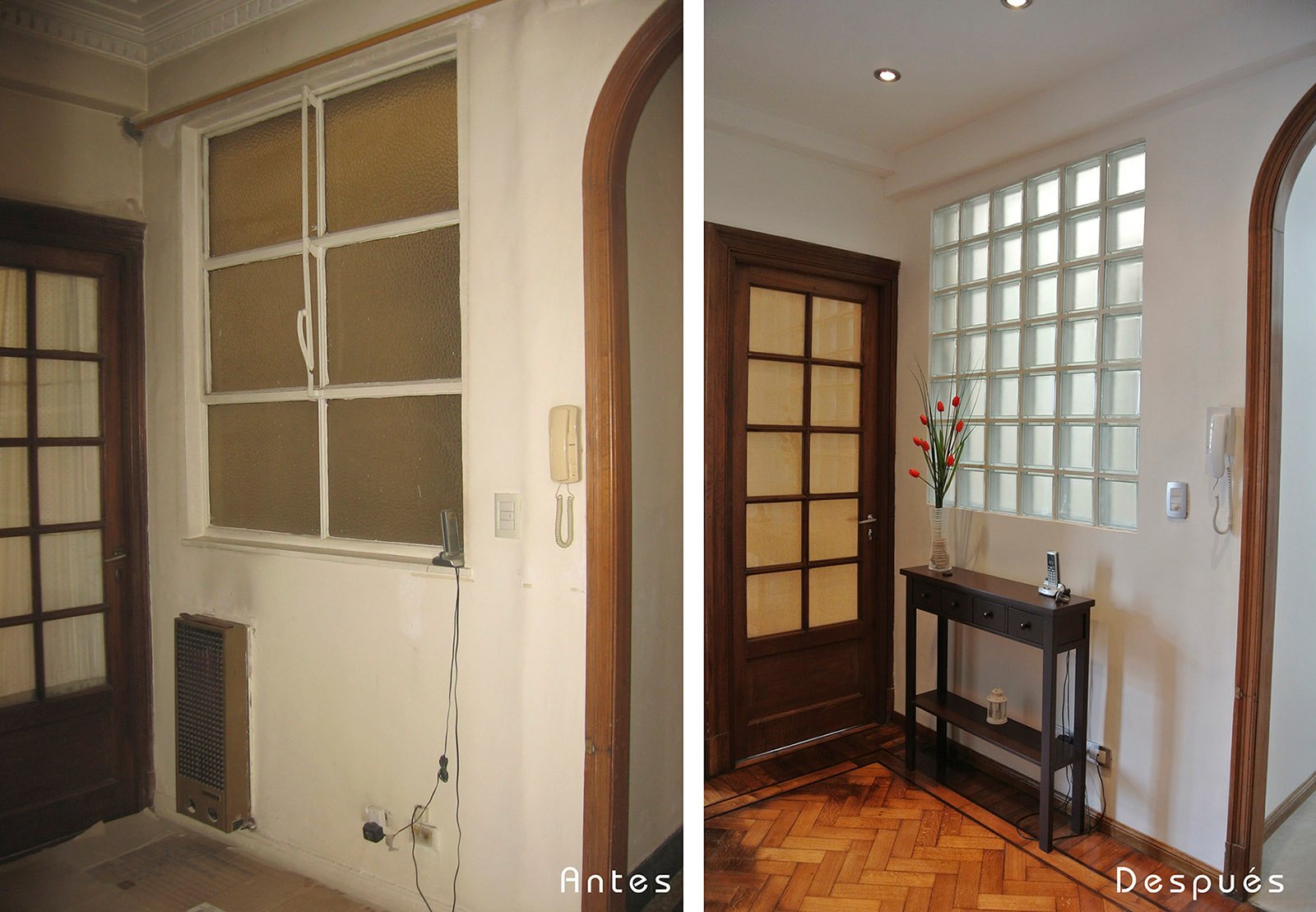 La idea fue potenciar y restaurar elementos valiosos de la construcción antigua: pisos de pinotea, puertas y ventanas macizas de cedro, trabajos de las molduras, combinándolos con el diseño moderno.