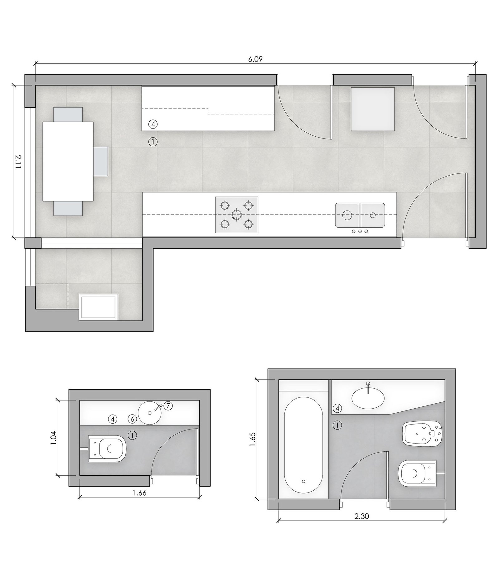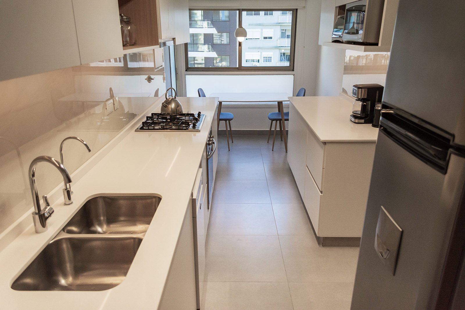Los clientes nos contactaron para modernizar la cocina, el baño y el toilette. El edificio no era muy antiguo pero no tenia un buen diseño y la funcionalidad podía optimizarse. También tenia algunos problemas constructivos que necesitaban reparación.