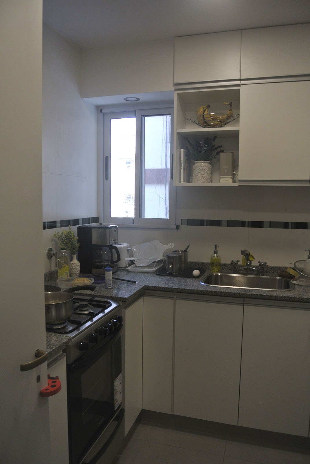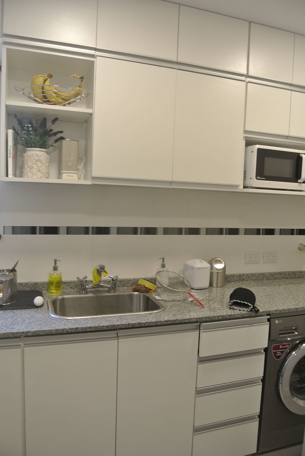 El pedido de la cliente fue aprovechar al máximo el espacio de mesada en la cocina y lograr un diseño moderno y funcional.