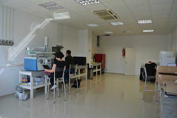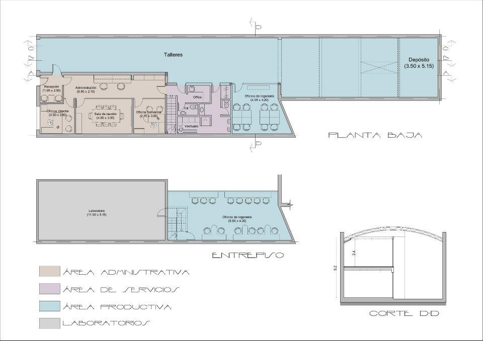 En la planta alta se ubican las oficinas de ingeniería, y el laboratorio de bioquímica, donde se realizan análisis de materiales y medio ambientales.