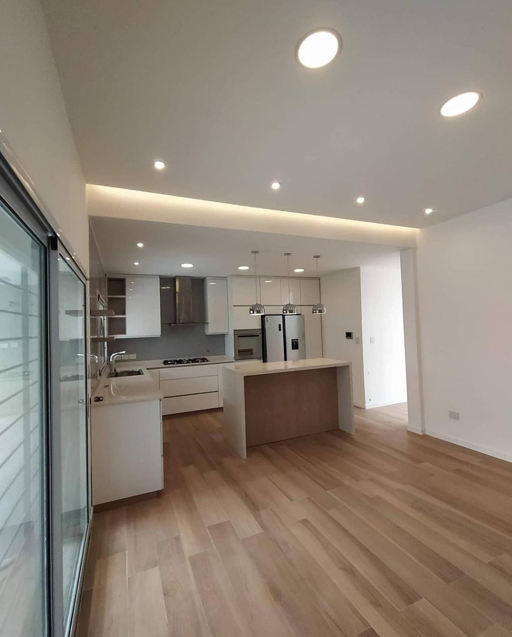 La premisa fue diseñar una casa moderna y minimalista. Se optó utilizar colores claros, porcelanatos simil madera para generar calidez y grandes aberturas.