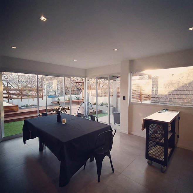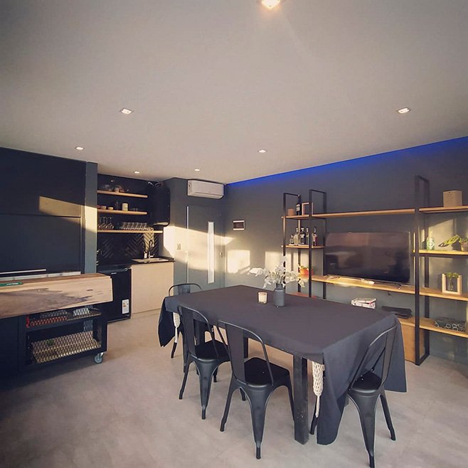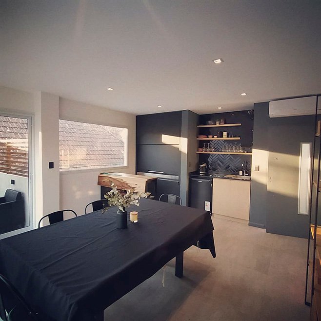 Para el interior del quincho se optó por un diseño moderno y minimalista.