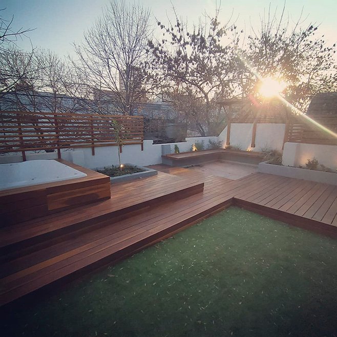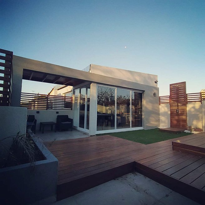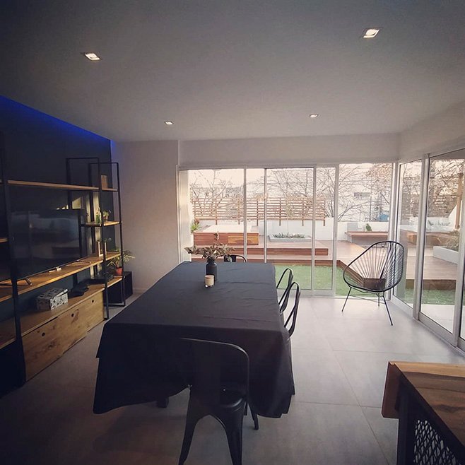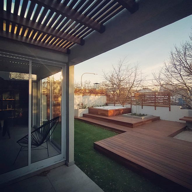 El cliente se contactó con el estudio ya que le había gustado una terraza que realizamos con anterioridad. El proyecto consta de quincho y reforma de terraza completa. En la zona exterior se utilizó lapacho tanto en deck como en bancos.
